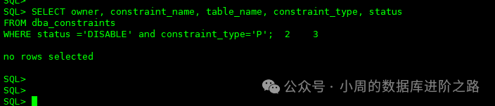 说明:“STATUS”表示Oracle当前的实例状态,必须为“OPEN”;“DATABASE_STATUS”表示Oracle当前数据库的状态,必须为“ACTIVE”。