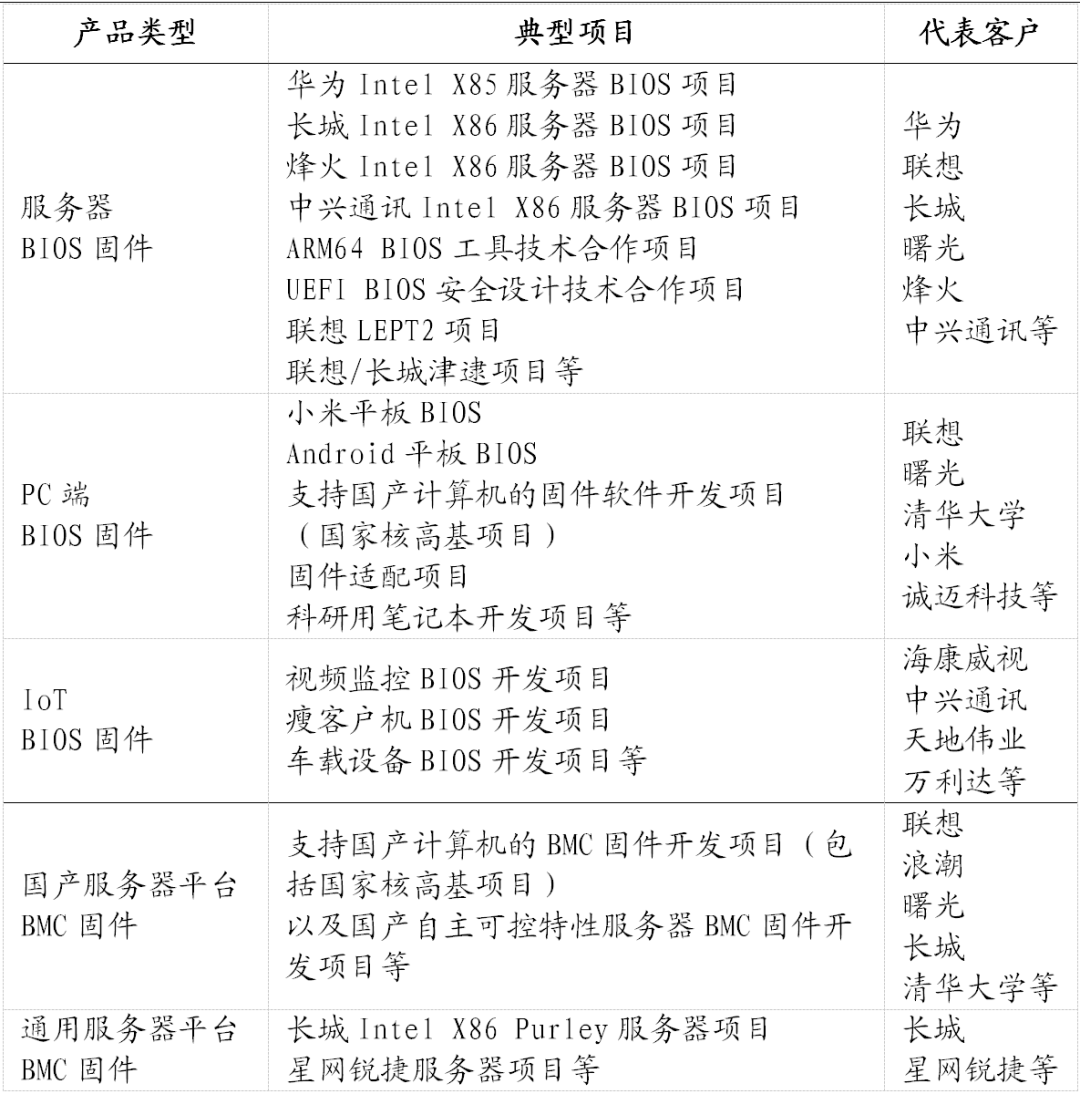 基于此种技术能力,公司可根据需求开发满足国内外各种 PC、服务器芯片需求。其商业模式为:为 CPU 厂商完成技术开发,包括解决个别固件问题或进行完整功能开发,再实现对计算机设备的批量销售。
