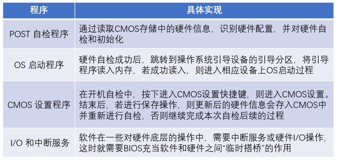 BIOS 主要功能是控制计算机启动后的基本程式,包括硬盘驱动(如装机过程中优先选择 DVD 或者 USB 启动盘),键盘设置,软盘驱动,内存和相关设备。