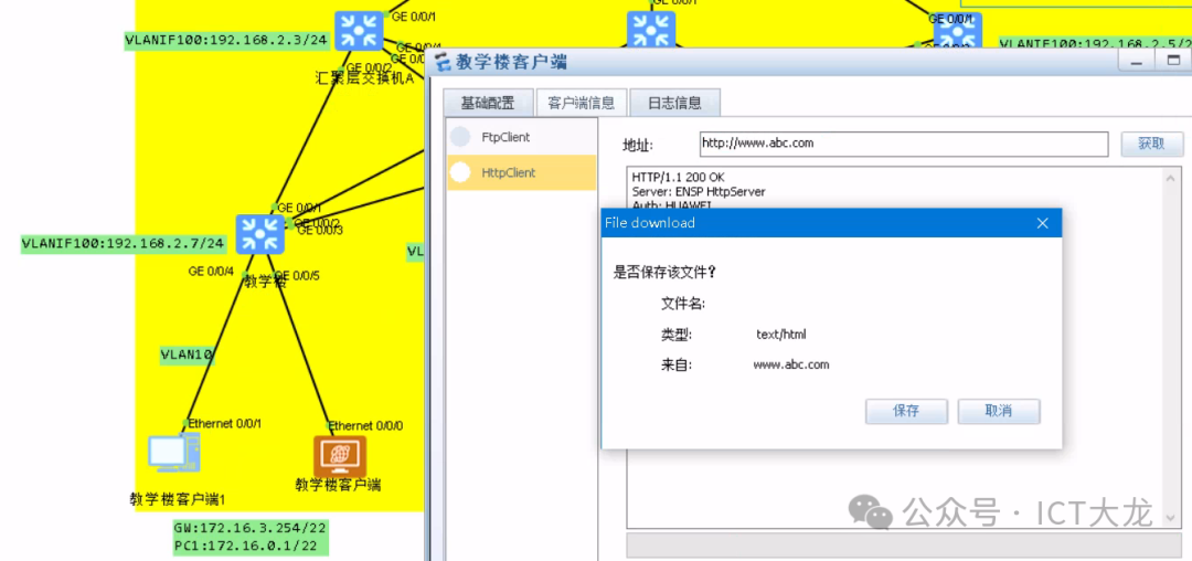 B校区的拓扑并没有设计的很复杂,直接使用了VLANIF接口进行模拟。