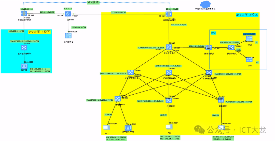 4.A校区与B校区需要经过VPN隧道进行通信。