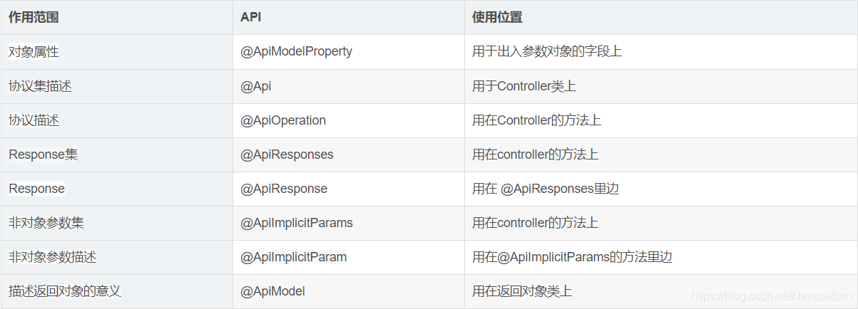【6】实体类、控制器、处理方法上面的注解,都是对其进行描述,下面对这些注解作说明
