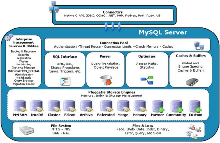 首先下上图,别吃惊,我知道你肯定吓了一跳,我接下来要做的事情就是把整个大的图分成一部分一部分的来看,尽量把他简化,我大概把它分成连接层,Sql处理层,存储引擎层