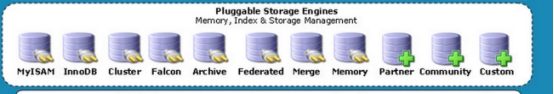 再来看下这图,存储引擎在mysql中不只一个,为了方便切换,其架构是插件式的,类似于设计模式里面的适配器模式,虽然上面看到有很多的存储引擎,但用得最多得还是InnoDb,它从MySql 5.5.5版本开始已经成为了默认得存储引擎