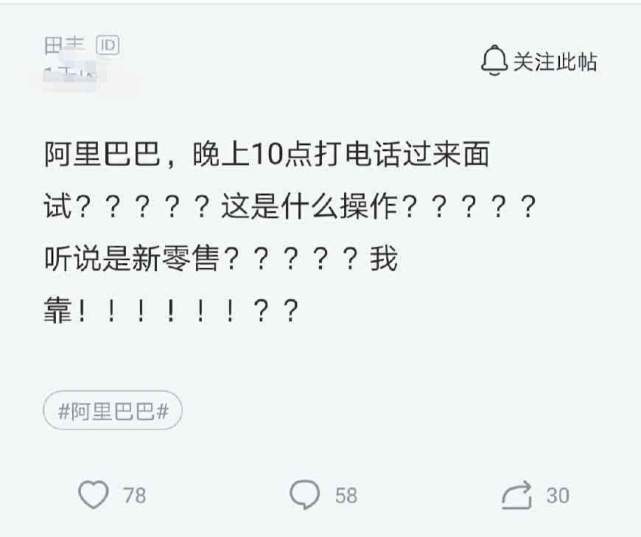 很快,这样的帖子就吸引了不少同行的围观,有程序员评论称:阿里是这样的,喜欢突然袭击,而且是晚上,相比外企有好多了,都会提前约好时间;别来了,受不了的,我每天11点下班好绝望;十点才干完活,才有时间面试吧;我有同学半夜12点接到面试电话的。