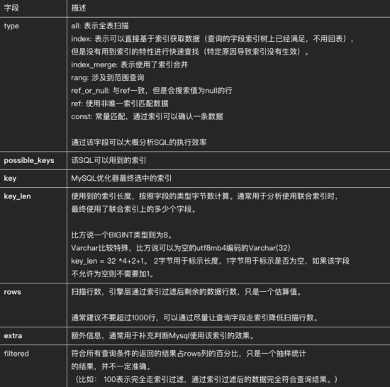 执行计划:我们可以通过explain关键字查看SQL的执行计划,通过执行计划分析SQL的执行情况。