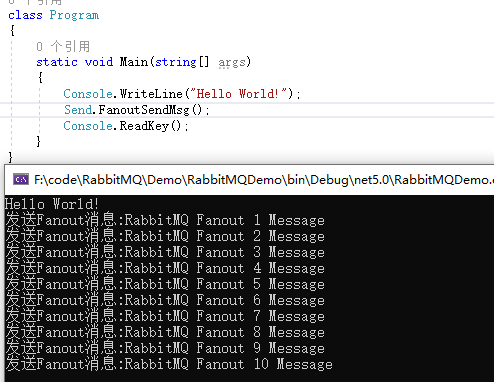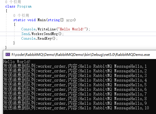 Console.WriteLine($"发送消息到队列:{queueName},内容:{message}");