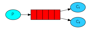 描述:一个生产者 P 发送消息到队列 Q,一个消费者 C 接收
