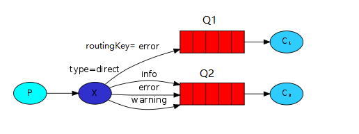 ClientA(生产者)发送消息到Exchange1(交换机),同时带上RouteKey(路由Key),Exchange1找到绑定交换机为它和绑定传入的RouteKey的队列,把消息转发到对应的队列,消费者Client1,Client2,Client3只需要指定对应的队列名既可以消费队列数据。