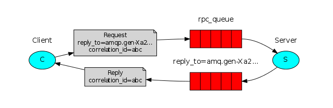 - RPC服务器端监听rpc_queue队列中的请求,当请求到来时,服务器端会处理并且把带有结果的消息发送给客户端。接收的队列就是replyTo设定的回调队列。