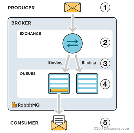 消息队列。我们发送给RabbitMQ的消息最后都会到达各种queue,并且存储在其中(如果路由找不到相应的queue则数据会丢失),等待消费者来取。