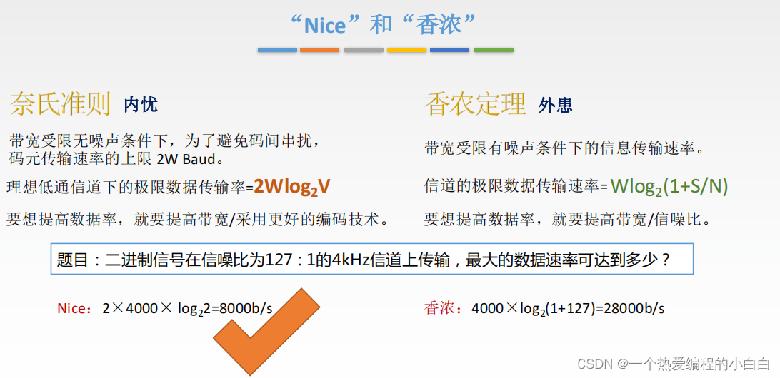 1.在任何信道中,码元传输的速率是有上限的。若传输速率超过此,上限,就会出现严重的码间串扰问题,使接收端对码元的完全正确识别成为不可能。
