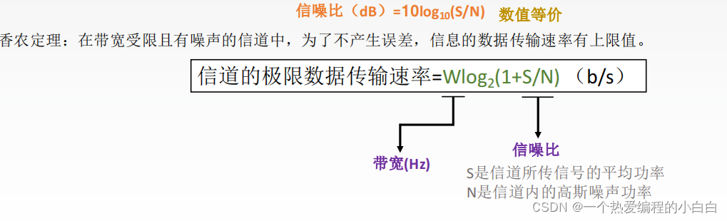 4.香农定理得出的为极限信息传输速率,实际信道能达到的传输速率要比它低不少。
