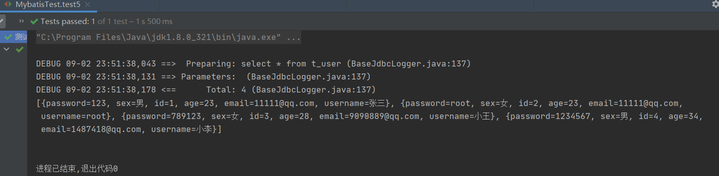 3={password=789123, sex=女, id=3, age=28, email=9090889@qq.com, username=小王}, 4={password=1234567, sex=男, id=4, age=34, email=1487418@qq.com, username=小李}}