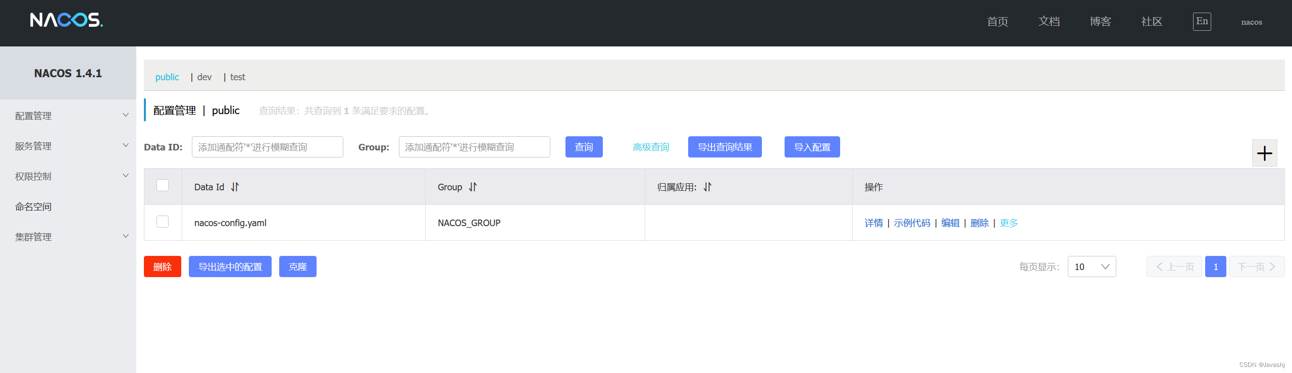 对于Nacos配置管理,通过Namespace、group、Data ID能够定位到一个配置集。