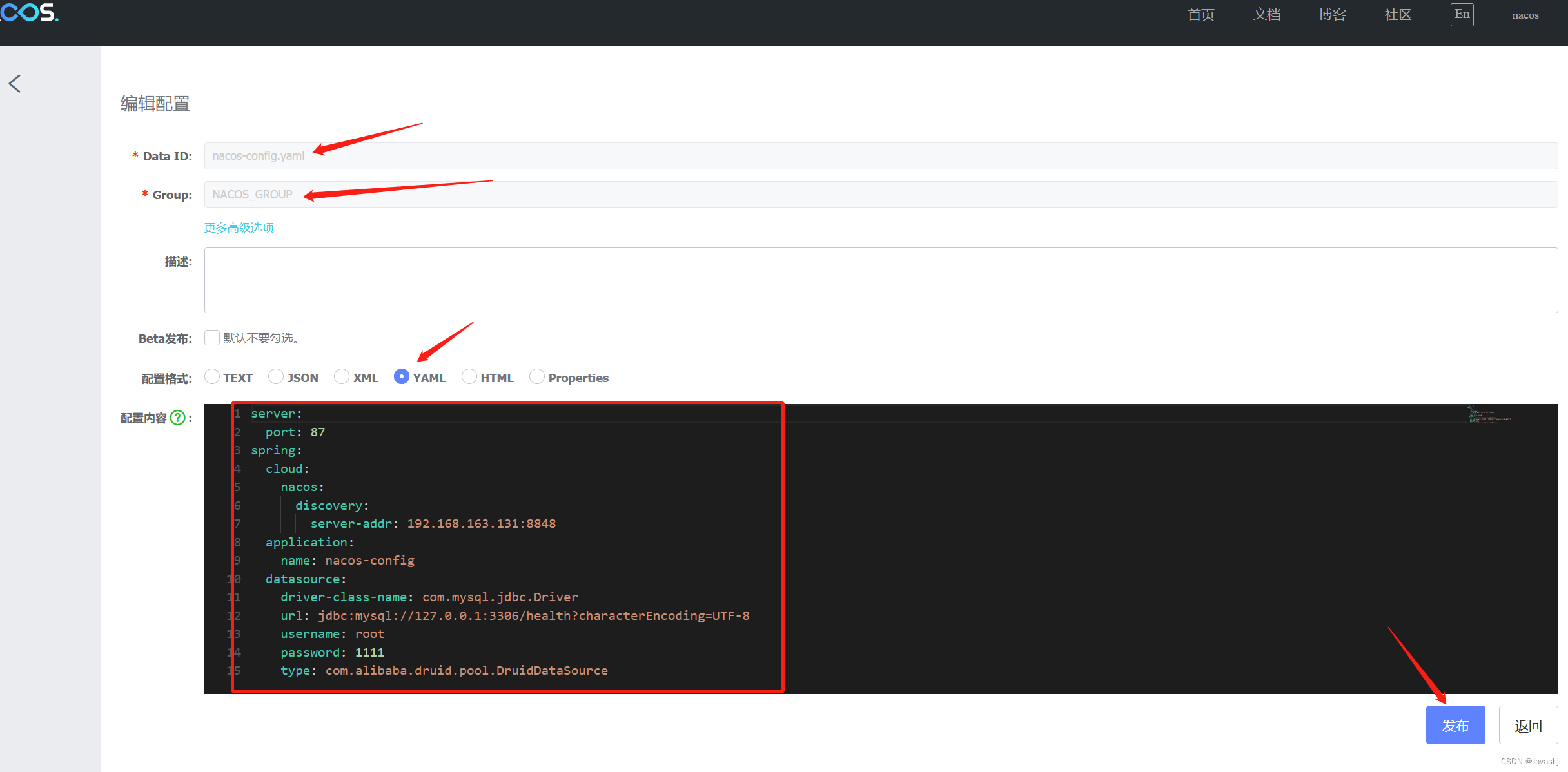 DataId: 每个项目下往往有若干个工程, 每个配置集(DataId)是一个工程的主配置文件
