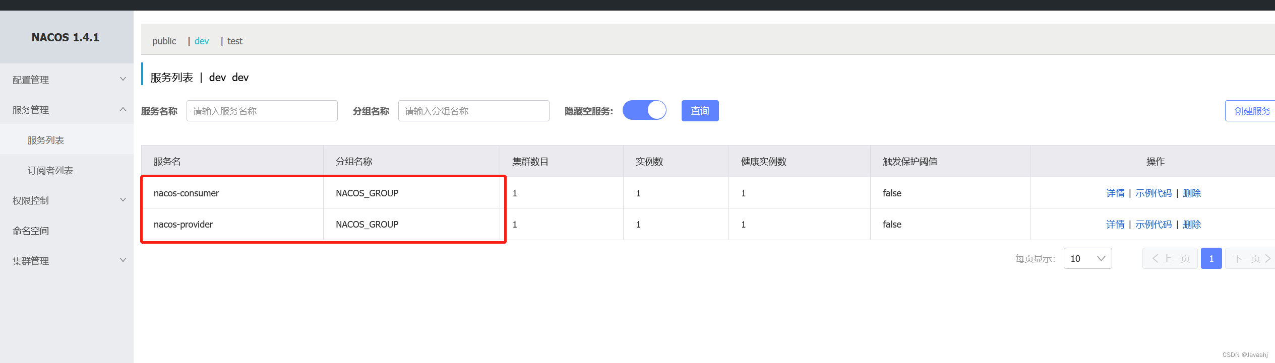 namespace: dev #读取开发环境的配置文件 namespace隔离