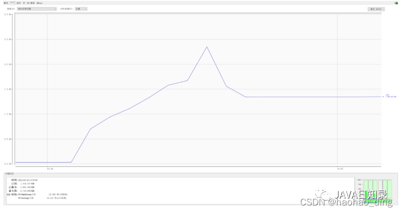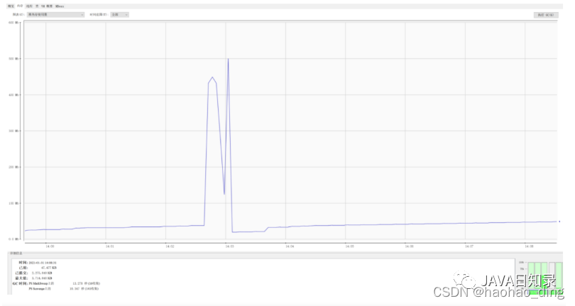 可以看出,下载开始前内存占用大概为几十M,下载开始后内存占用急速上升,峰值达到接近2.5G,即使是下载完成,堆内存也维持一个较高的占用,这实在是太可怕了,如果生产环境敢这么搞,不出意外肯定内存溢出。