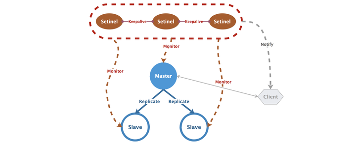 简单说一下sentinel实现高可用的原理: 集群的多个(2n+1,N>1)哨兵会定期轮询redis的所有master/slave节点,如果sentinel集群中超过一半的哨兵判定redis某个节点已主观下线,就会将其判定为客观下线进行相应处理: