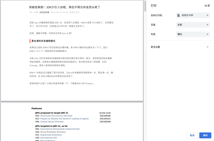 这个功能可太有用了,可以把一些网页转成离线版的文档。有人说直接保存网页不就行了,除了程序员,大部分人还是更能直接读 PDF ,而不会用离线存储的网页。
