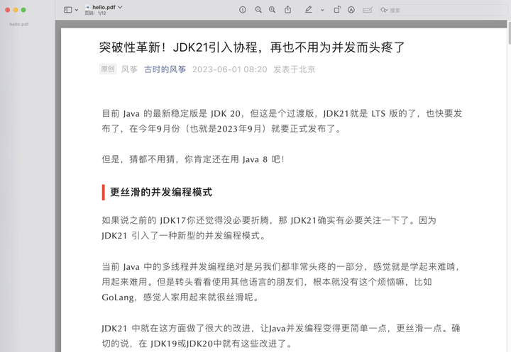 调用生成 PDF 的方法,将一个微信公众号文章转成 PDF。