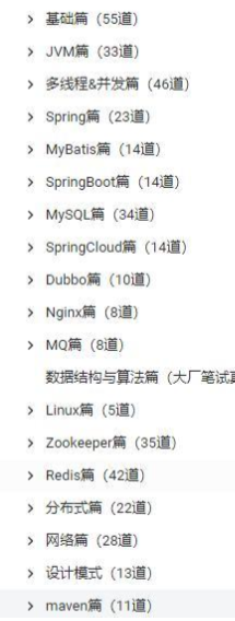如果大家目前确实脑子里没有什么思路,LZ今天就给大家分享一份包含了23个知识点,从基础到进阶都有的互联网大厂(Java岗)面试真题汇总。由于篇幅限制LZ下面就只展示部分内容,需要的小伙伴点击文末小卡片即可!