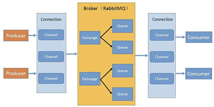 生产者是连接到 Server,建立一个连接,开启一个信道。