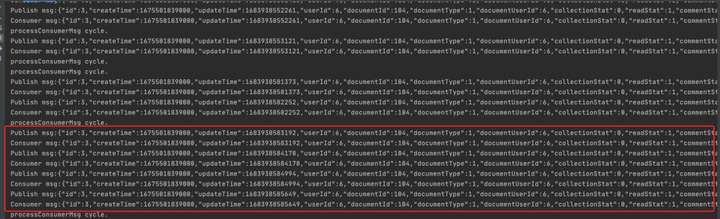 @Component public class RabbitmqServiceImpl implements RabbitmqService { @Autowired private RabbitmqClient rabbitmqClient; @Autowired private NotifyService notifyService; @Override public void publishMsg(String exchange, BuiltinExchangeType exchangeType, String toutingKey, String message) throws IOException, TimeoutException { ConnectionFactory factory = rabbitmqClient.getConnectionFactory(toutingKey); // TODO: 这种并发量起不来,需要改造成连接池 //创建连接 Connection connection = factory.newConnection(); //创建消息通道 Channel channel = connection.createChannel(); // 声明exchange中的消息为可持久化,不自动删除 channel.exchangeDeclare(exchange, exchangeType, true, false, null); // 发布消息 channel.basicPublish(exchange, toutingKey, null, message.getBytes()); System.out.println("Publish msg:" + message); channel.close(); connection.close(); } @Override public void consumerMsg(String exchange, String queue, String routingKey) throws IOException, TimeoutException { ConnectionFactory factory = rabbitmqClient.getConnectionFactory(routingKey); // TODO: 这种并发量起不来,需要改造成连接池 //创建连接 Connection connection = factory.newConnection(); //创建消息信道 final Channel channel = connection.createChannel(); //消息队列 channel.queueDeclare(queue, true, false, false, null); //绑定队列到交换机 channel.queueBind(queue, exchange, routingKey); Consumer consumer = new DefaultConsumer(channel) { @Override public void handleDelivery(String consumerTag, Envelope envelope, AMQP.BasicProperties properties, byte[] body) throws IOException { String message = new String(body, "UTF-8"); System.out.println("Consumer msg:" + message); // 获取Rabbitmq消息,并保存到DB // 说明:这里仅作为示例,如果有多种类型的消息,可以根据消息判定,简单的用 if...else 处理,复杂的用工厂 + 策略模式 notifyService.saveArticleNotify(JsonUtil.toObj(message, UserFootDO.class), NotifyTypeEnum.PRAISE); channel.basicAck(envelope.getDeliveryTag(), false); } }; // 取消自动ack channel.basicConsume(queue, false, consumer); } @Override public void processConsumerMsg() { System.out.println("Begin to processConsumerMsg."); Integer stepTotal = 1; Integer step = 0; // TODO: 这种方式非常 Low,后续会改造成阻塞 I/O 模式 while (true) { step ++; try { System.out.println("processConsumerMsg cycle."); consumerMsg(CommonConstants.EXCHANGE_NAME_DIRECT, CommonConstants.QUERE_NAME_PRAISE, CommonConstants.QUERE_KEY_PRAISE); if (step.equals(stepTotal)) { Thread.sleep(10000); step = 0; } } catch (Exception e) { } } } }