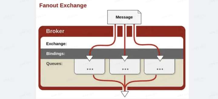 Fanout Exchange:这种类型的交换机需要将队列绑定到交换机上。一个发送到交换机的消息都会被转发到与该交换机绑定的所有队列上。很像子网广播,每台子网内的主机都获得了一份复制的消息。简单点说就是发布订阅。