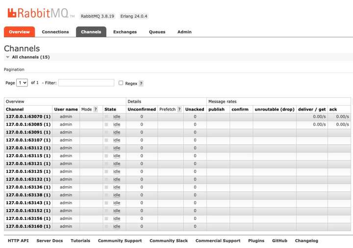 Channel:信道,消息读写等操作在信道中进行。客户端可以建立多个信道,每个信道代表一个会话任务。