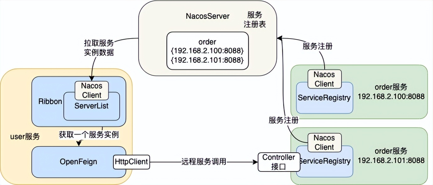 于是乎,OpenFeign就对Ribbon说,兄弟,你不是可以从注册中心获取到order服务所有服务实例数据么,帮我从这些服务实例数据中找一个给我。