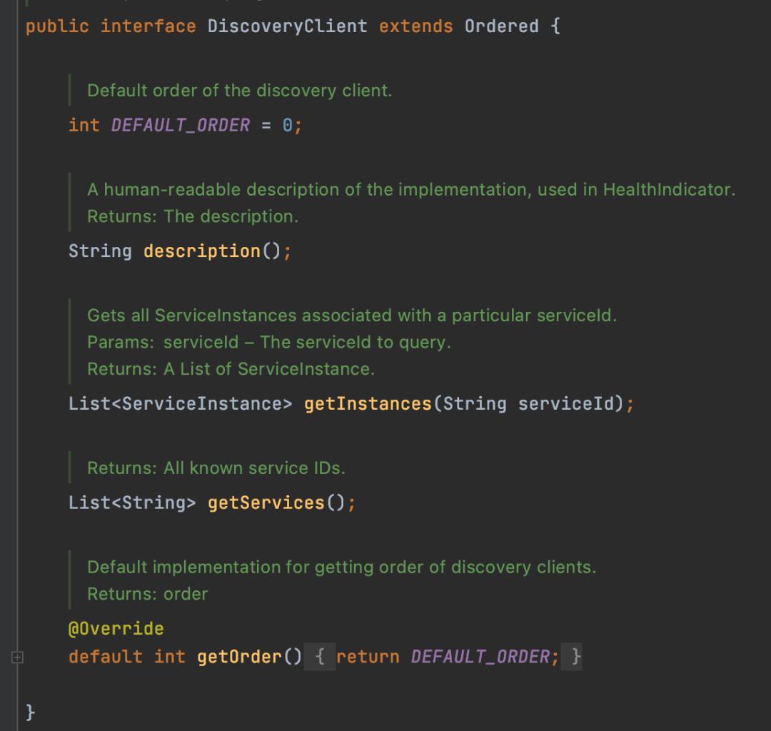而SpringCloud实际上是提供了这么一个获取服务实例的api,DiscoveryClient