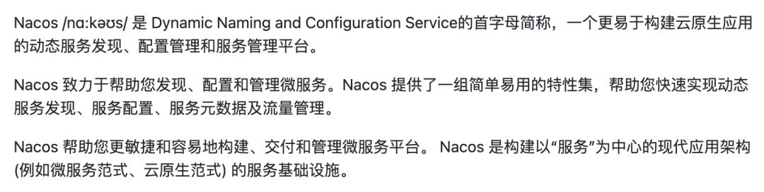 这一段话说的直白点就是Nacos是一个注册中心和配置中心!