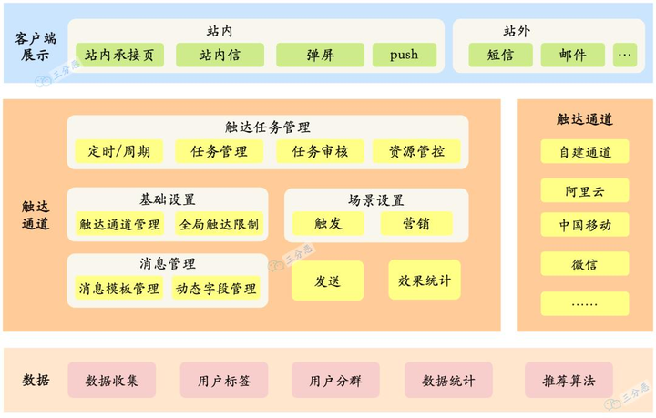 多种渠道给用户推送消息,主要包含站内和站外两大部分: