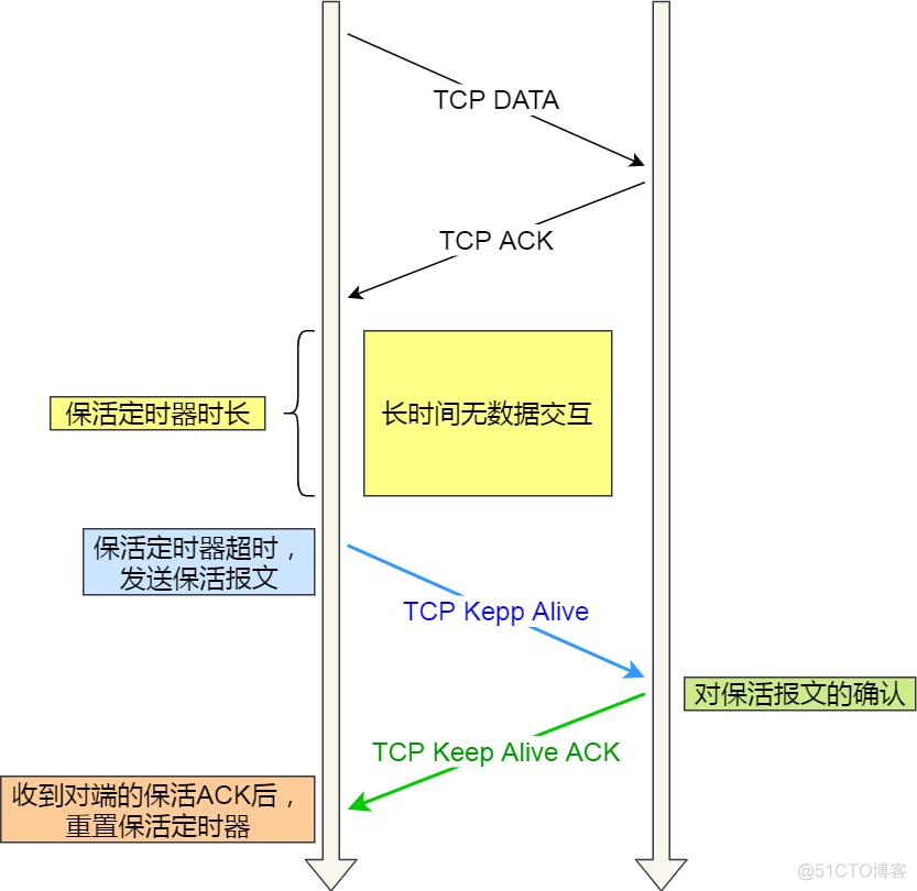注意,应用程序如果想使用 TCP 保活机制,需要通过 socket 接口设置 SO_KEEPALIVE 选项才能够生效,如果没有设置,那么就无法使用 TCP 保活机制。