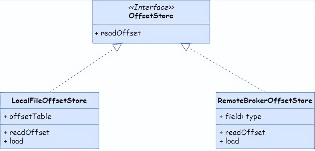 从上面的代码可以看到,OffsetStore 的两个实现类对应了广播模式和集群模式。从文件名也可以看到,LocalFileOffsetStore 是从本地读取偏移量,而 RemoteBrokerOffsetStore 则从 Broker 端请求偏移量。