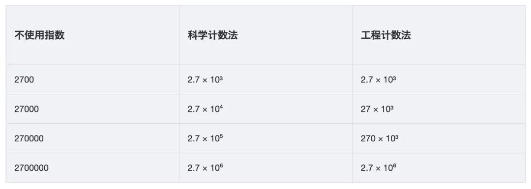 - toEngineeringString() :在必要的时候使用工程计数法。类似于科学计数法,只不过指数的幂都是3的倍数,这样方便工程上的应用,因为在很多单位转换的时候都是10^3;