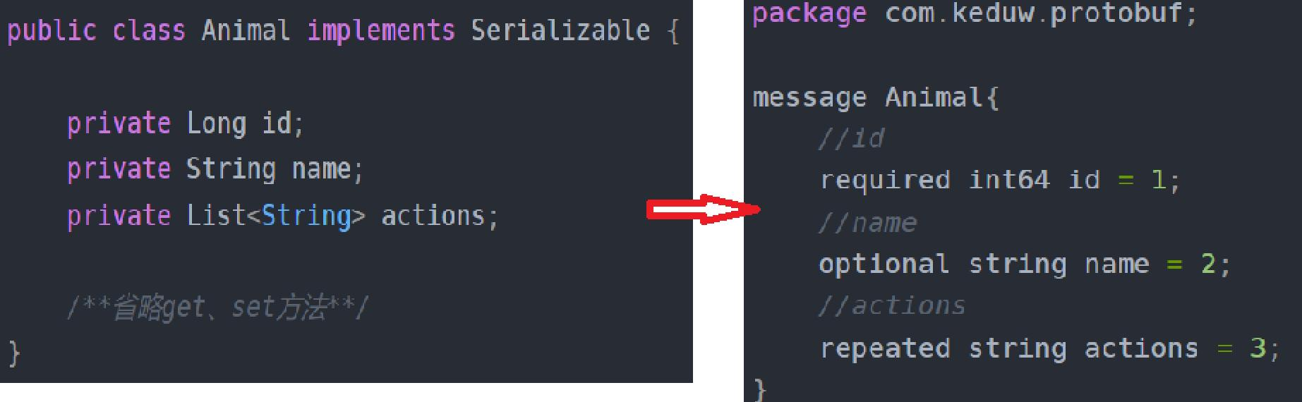 - 3.前面通过工具生成的代码(AnimalProto)已经帮我们封装好了序列化和反序列化的方法,我们只需要调用对应方法即可