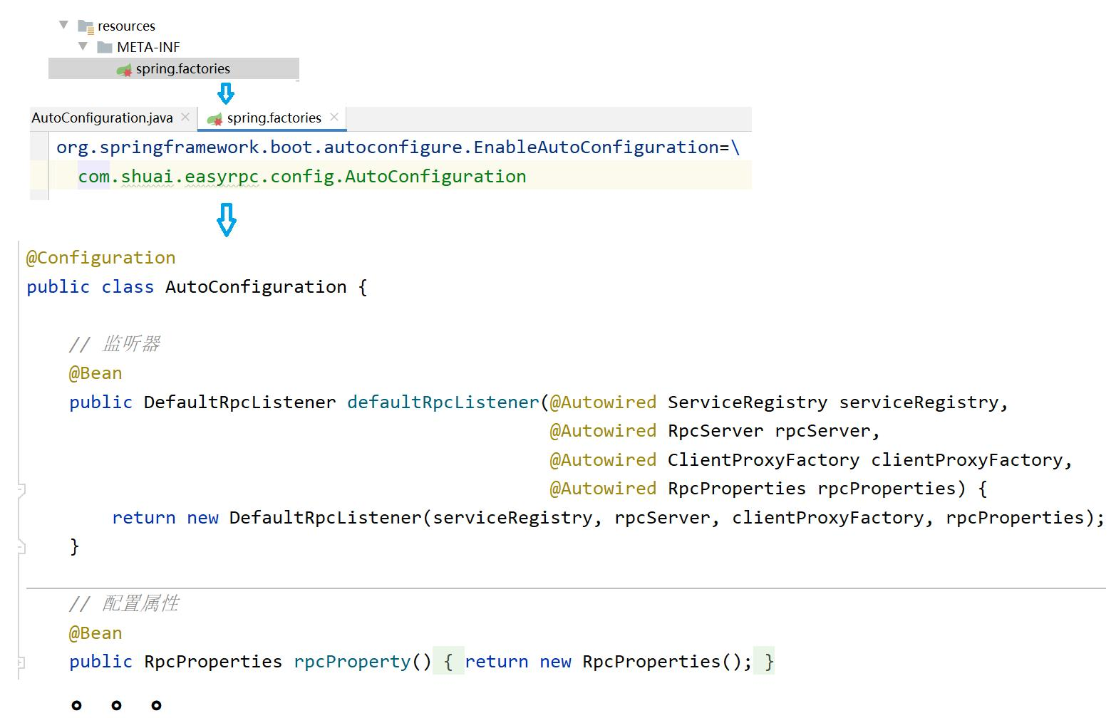主要是加载一些rpc相关的配置类,使用SpringBoot自动装配。可以使用SPI机制加入一些自定义的类,放到指定文件夹中。