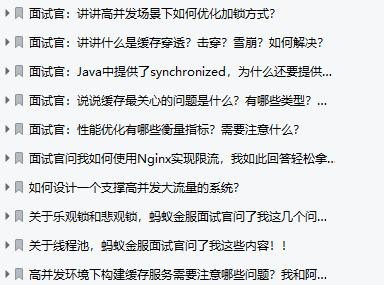 笔记从基础到实战再到源码,深入浅出高并发系统架构,并对当下互联网面试高频题做出了全面的汇总,借此机会文末还分享了一份阿里的高并发系统设计实录,但由于平台篇幅下面无法把全部内容为大家一一展示出来,需要完整版的小伙伴 点击文末小卡片 即可~