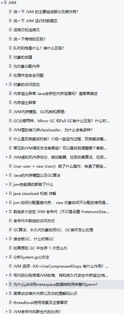 文档涵盖Java基础,设计模式,JVM,多线程,Mysql,Spring,Spring Boot,Spring Cloud,Dubbo,Mybatis,Redis,网络,Linux,MQ,Zookeeper,Netty甚至大数据算法项目方面,足足有1658页,可以说是比较全的了。篇幅限制就只为大家展示目录跟部分内容了,需要完整版的小伙伴 点击文末小卡片 即可~