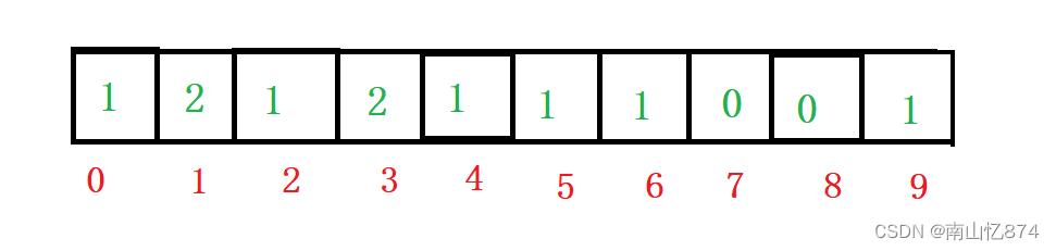 1出现了2次,将原数组的第二位和第三位覆写为1。