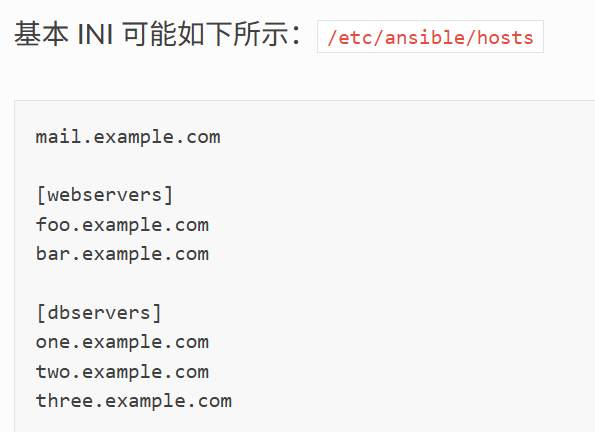 /etc/ansible/hosts--- 主机清单/etc/ansible/roles/--- 存放角色的目录/var/log/ansible.log---日志