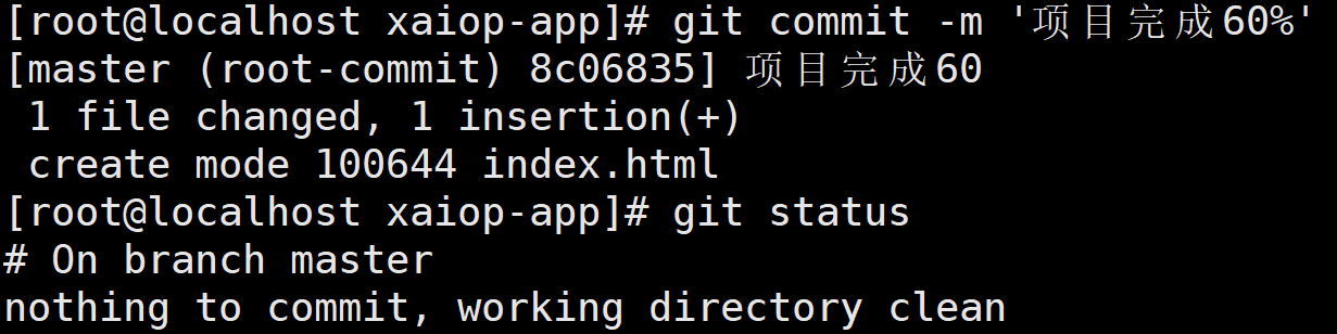 [root@localhost xaiop-app]# git commit -m '项目完成60%'