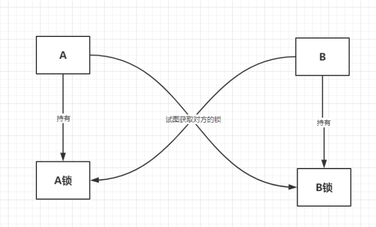 A抢到A锁进入睡眠,B抢到B锁进入睡眠,然后A唤醒后尝试获取B锁,当然获取不到啊,B也尝试获取A锁,当然也获取不到,需要的锁都在对方的手中,自然陷入死锁