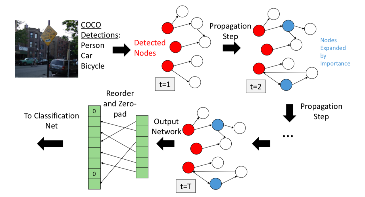 It introduce the Graph Search Neural Network (GSNN) as a way of efficiently incorporating large knowledge graphs into a vision classification pipeline, which outperforms standard neural network baselines for multi-label classification.