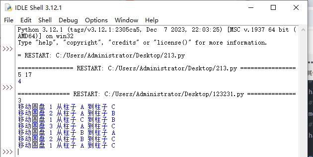moves.append(f"移动圆盘 {n} 从柱子 {src} 到柱子 {dst}")
