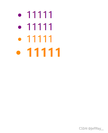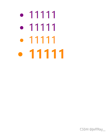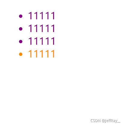 假设我们有四个 <li> 都是紫色,我希望其中一个变为橘色,就可以让其中一个 <li> 的类属性不同:
