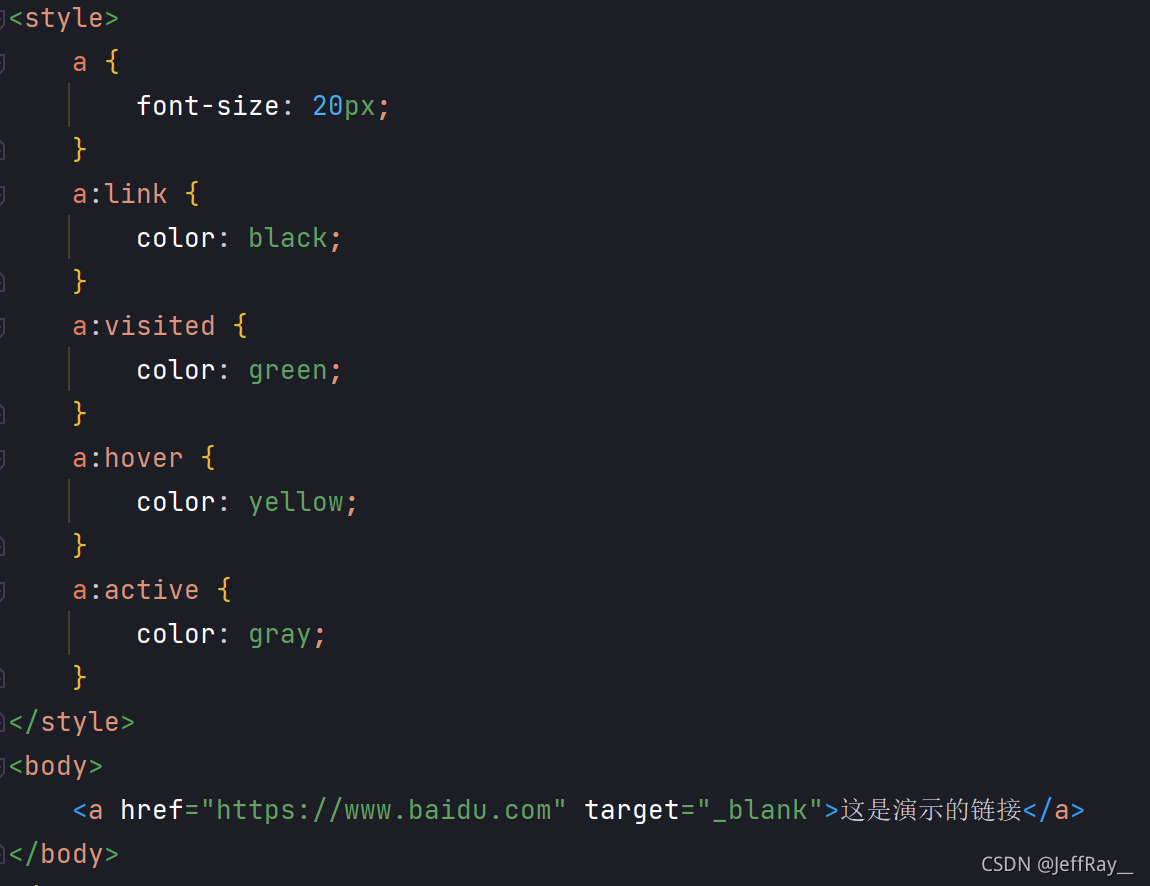 链接伪类选择器是搭配 a 标签使用的,会根据 a 标签的状态来选择。