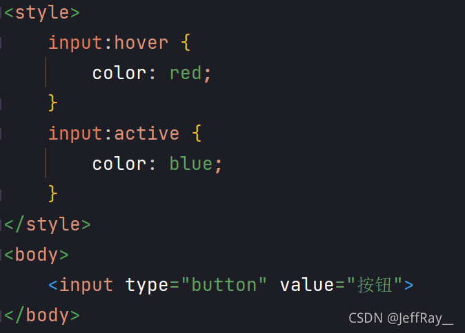 有意思的是 hover 和 active 选择器还能作用于别的标签,就拿 input 标签来说,我们让悬停为红色,点击之后为蓝色: